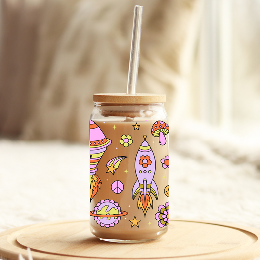 Out of This World 16oz Glass Can with Bamboo Lid & Glass Straw