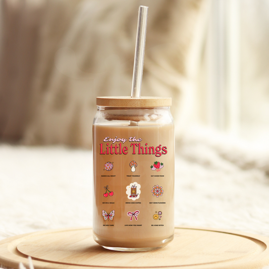 Enjoy The Little Things 16oz Glass Can with Bamboo Lid & Glass Straw