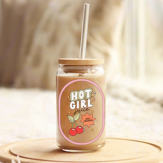 Hot Girl Juice 16oz Glass Can with Bamboo Lid & Glass Straw