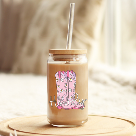 Howdy 16oz Glass Can with Bamboo Lid & Glass Straw