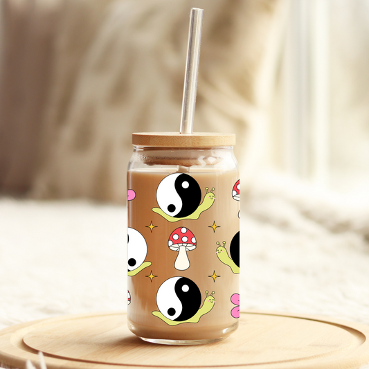 Yin Yang Snails 16oz Glass Can with Bamboo Lid & Glass Straw