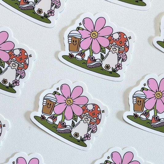 Flower & Mushroom Coffee Run Sticker