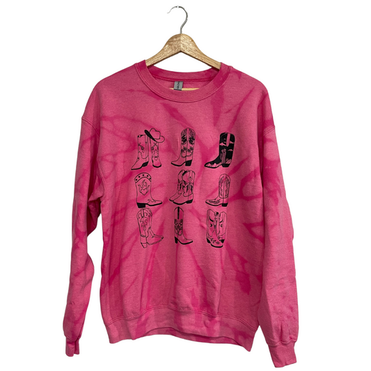 Cowgirl Boots Pink Bleach Dye Sweatshirt