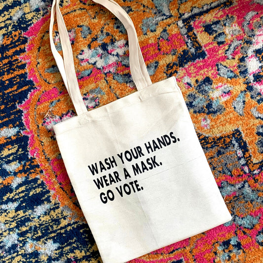 Wash Your Hands. Wear A Mask. Go Vote Canvas Tote Bag